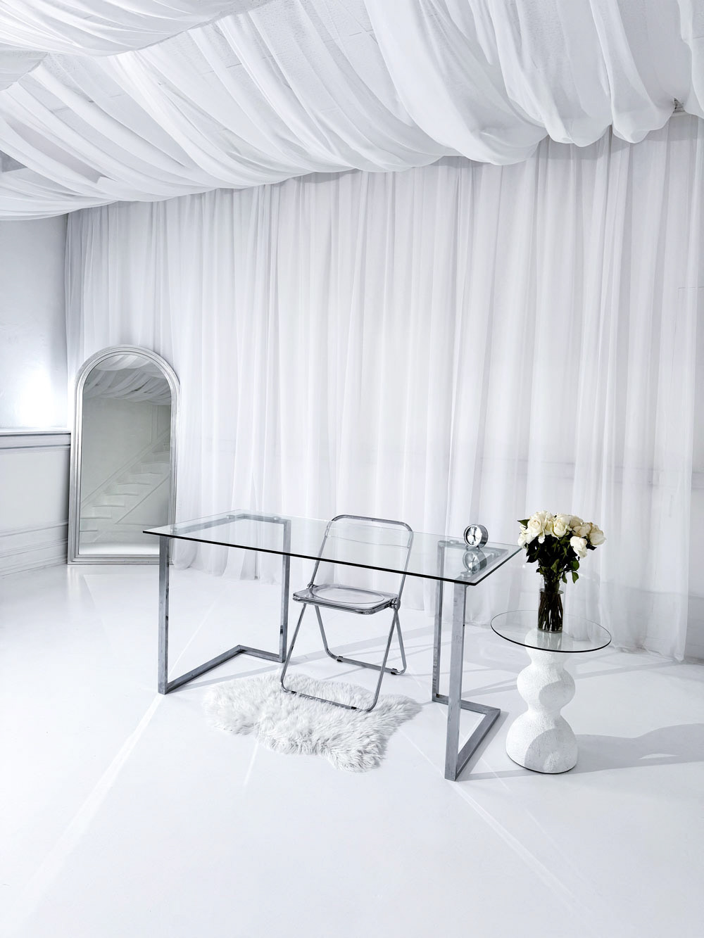 Mix and match our studio furniture to design a custom set for filming, podcasting, or photography