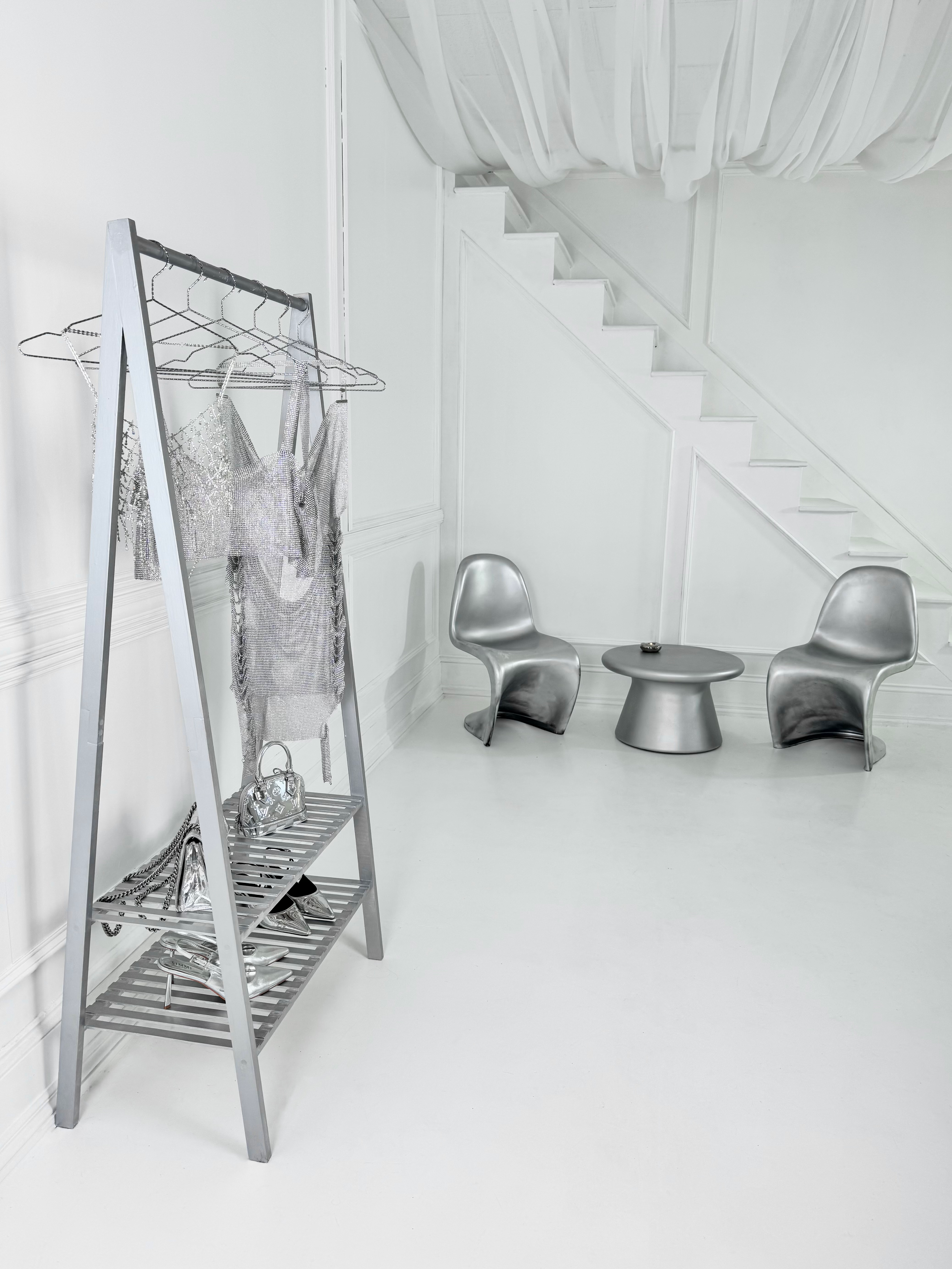 Please take care of the studio and its contents. Avoid any damage, especially marks or stains on furniture and clothing. Shoe covers are mandatory and must be worn at all times inside the studio.